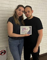 Хотим с Мишей выразить благодарность Эле Оздемир, за помощь и постановку свадебного танца. В момент постановки танца, была легкая и не принужденная обстановка, Мишка у меня очень закрытый и стеснительный, но Ты смогла найти к нему подход, и он с радостью приезжал на занятия. Ты помогла раскрыть потенциал Миши и показать, что не хотеть танцевать, это не значит не уметь. В целом 6ти занятий нам хватило для того, чтобы запомнить от и до, и не репетировать дома. Гости и наша команда были в восторге, особенно Миша покорил их сердца и показал, что он умеет))) Во время выступления я даже на удивление не чувствовала ни капли волнения, мы просто наслаждались этим моментом и друг другом. Я считаю, что это большой успех)) Спасибо еще раз огромное!!